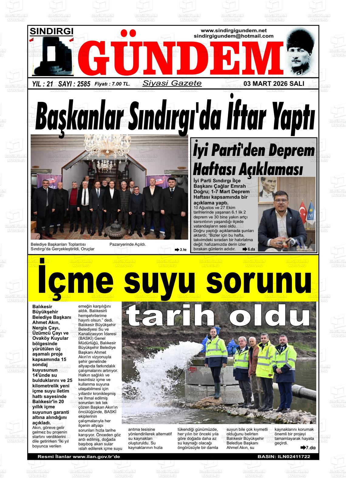 SINDIRGI GÜNDEM